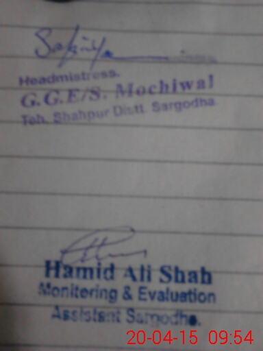 | District: SARGODHA | Tehsil: SHAHPUR | Markaz: GONDAL - FEMALE | Level: Middle | |