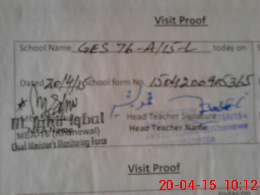 | EMIS Code: 36420654 | Name of School: GES 76-A/15-L, P/O 79/15-L, KHANEWAL | |||