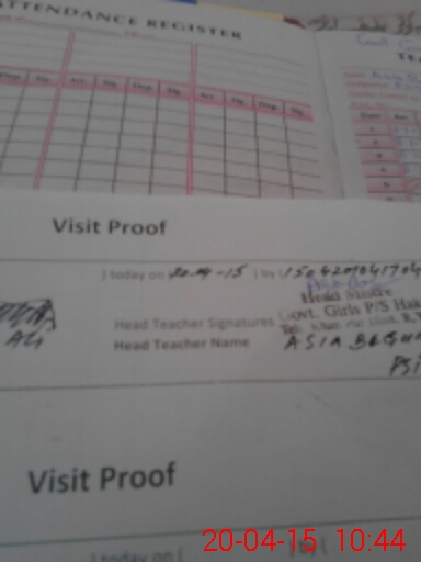 | Attendance Register | Head Teacher | MEA with School | Visit Proof |