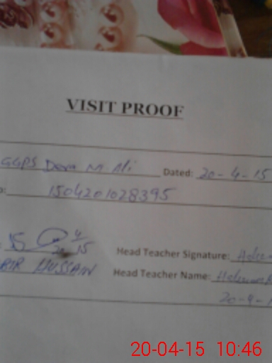 | Attendance Register | Head Teacher | MEA with School | Visit Proof |