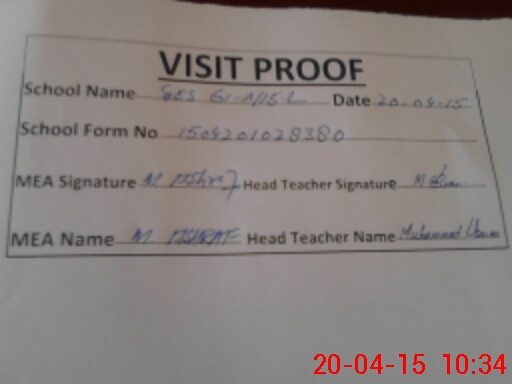| Attendance Register | Head Teacher | MEA with School | Visit Proof |