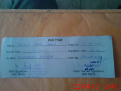 | Attendance Register | Head Teacher | MEA with School | Visit Proof |