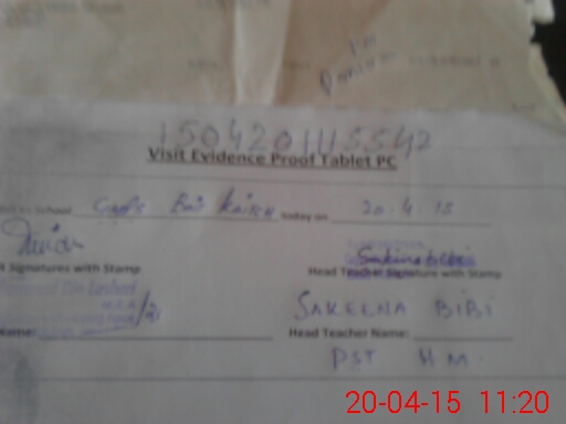 | Attendance Register | Head Teacher | MEA with School | Visit Proof |