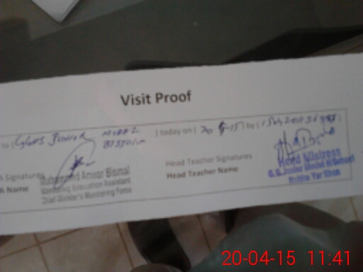 | Attendance Register | Head Teacher | MEA with School | Visit Proof |