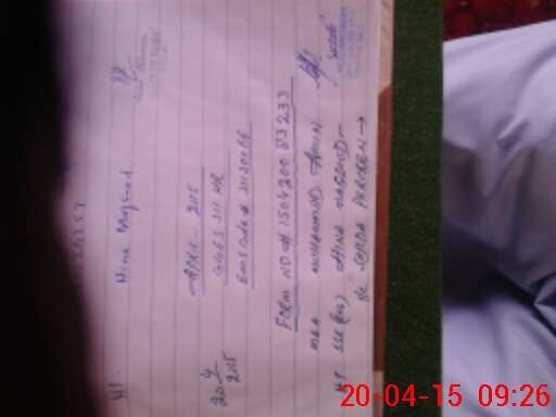 | Monitoring Date: 20-04-2015 | Start Time: 20-04-2015 08:32 AM | End Time: 20-04-2015 09:28 AM | Name of MEA: Mu**** Am**** BN**** 04 | |