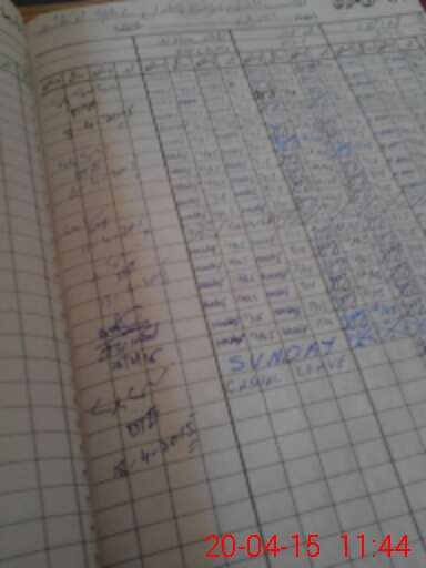 | CNIC | Full Name | Designation | R/C | Absence During Last Calender Month |