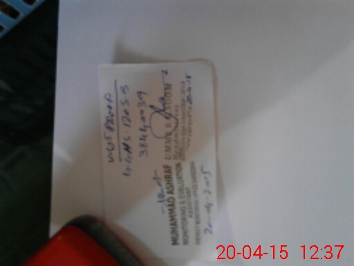 | Monitoring Date: 20-04-2015 | Start Time: 20-04-2015 11:07 AM | End Time: 20-04-2015 12:45 PM | Name of MEA: MU**** AS**** (R**** | |
