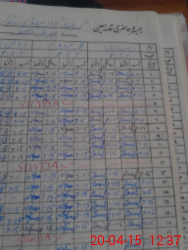 | CNIC | Full Name | Designation | R/C | Absence During Last Calender Month |