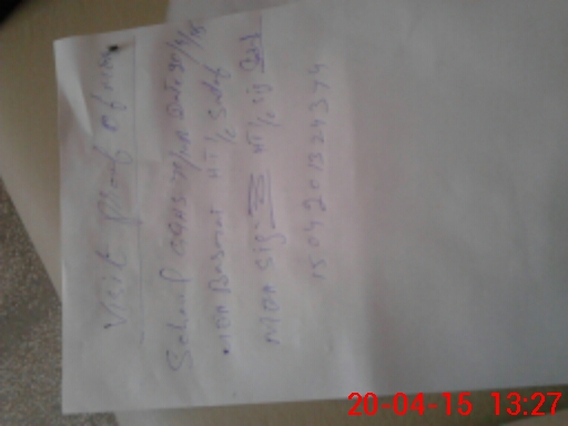 | Monitoring Date: 20-04-2015 | Start Time: 20-04-2015 12:20 PM | End Time: 20-04-2015 01:39 PM | Name of MEA: Z.**** Ba**** Al**** | |