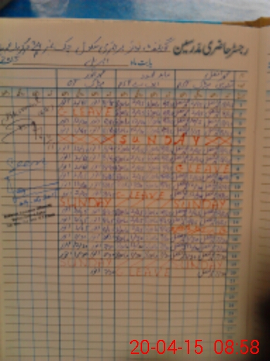 | CNIC | Full Name | Designation | R/C | Absence During Last Calender Month |
