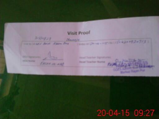 | Attendance Register | Head Teacher | MEA with School | Visit Proof |
