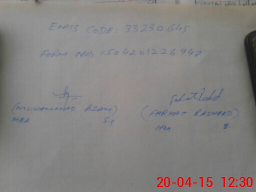 | Name: FA**** RA**** Designation: (School Headmaster's/Headmistress's) PST Phone/Cell Number: 03**** |