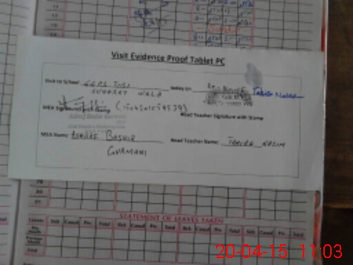 | Attendance Register | Head Teacher | MEA with School | Visit Proof |