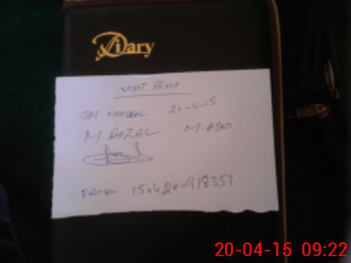 | Monitoring Date: 20-04-2015 | Start Time: 20-04-2015 07:51 AM | End Time: 20-04-2015 09:24 AM | Name of MEA: M.Af**** (R**** | |