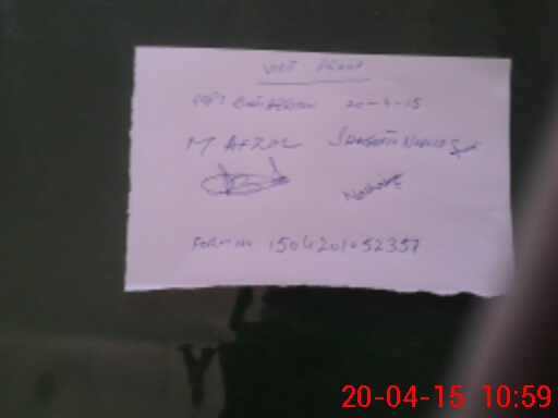| Monitoring Date: 20-04-2015 | Start Time: 20-04-2015 09:53 AM | End Time: 20-04-2015 11:00 AM | Name of MEA: M.Af**** (R**** | |