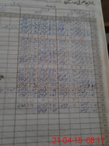 | CNIC | Full Name | Designation | R/C | Absence During Last Calender Month |