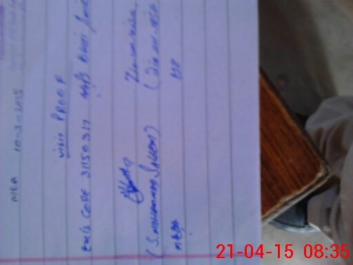 | Monitoring Date: 21-04-2015 | Start Time: 21-04-2015 08:07 AM | End Time: 21-04-2015 08:36 AM | Name of MEA: Mu**** Sa**** BN**** 33 | |