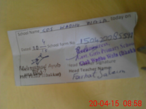 | Attendance Register | Head Teacher | MEA with School | Visit Proof |