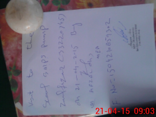 | Monitoring Date: 21-04-2015 | Start Time: 21-04-2015 07:45 AM | End Time: 21-04-2015 09:17 AM | Name of MEA: J-**** CH**** MO**** AF**** | |