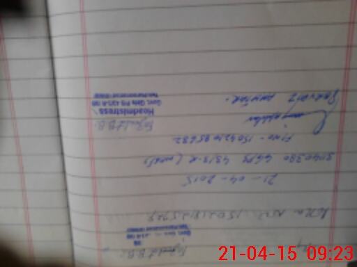 | Monitoring Date: 21-04-2015 | Start Time: 21-04-2015 08:56 AM | End Time: 21-04-2015 09:25 AM | Name of MEA: Pe**** Ak**** BN**** 12 | |