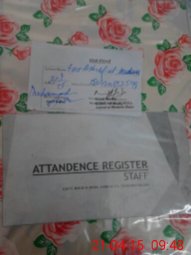 | Name: IS**** HU**** Designation: (School Headmaster's/Headmistress's) PRINCIPAL Phone/Cell Number: 03**** |