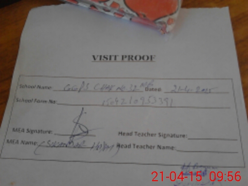 | Attendance Register | Head Teacher | MEA with School | Visit Proof |