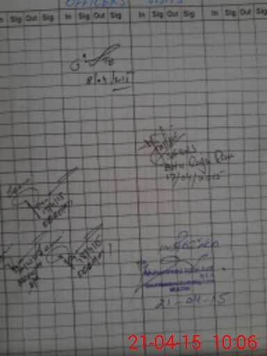 | Monitoring Date: 21-04-2015 | Start Time: 21-04-2015 09:51 AM | End Time: 21-04-2015 10:07 AM | Name of MEA: MU**** IQ**** AS**** | |