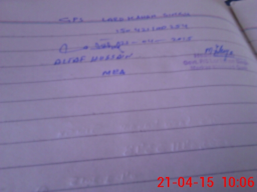 | Monitoring Date: 21-04-2015 | Start Time: 21-04-2015 09:35 AM | End Time: 21-04-2015 10:07 AM | Name of MEA: Al**** Hu**** BN**** | |