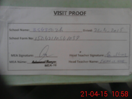 | Attendance Register | Head Teacher | MEA with School | Visit Proof |
