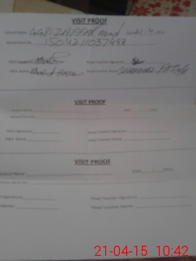| Attendance Register | Head Teacher | MEA with School | Visit Proof |