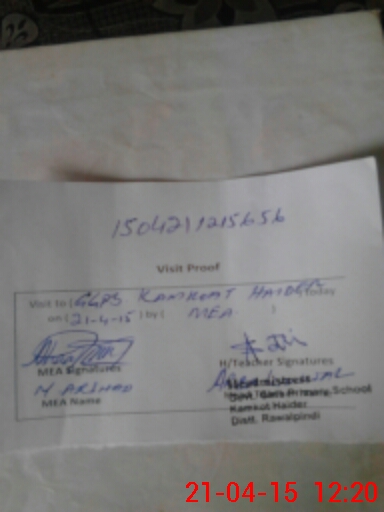 | Attendance Register | Head Teacher | MEA with School | Visit Proof |
