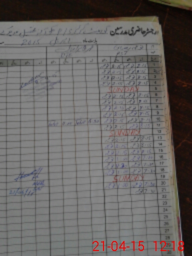 | CNIC | Full Name | Designation | R/C | Absence During Last Calender Month |