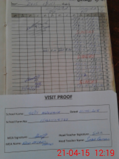 | Attendance Register | Head Teacher | MEA with School | Visit Proof |