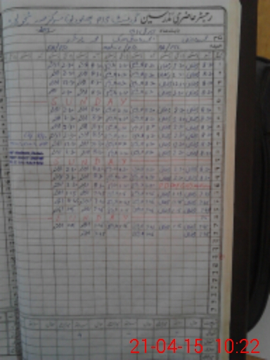 | CNIC | Full Name | Designation | R/C | Absence During Last Calender Month |