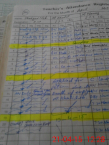 | Name: Fa**** Mu**** Sh**** Designation: (School Headmaster's/Headmistress's) Head Master Phone/Cell Number: 03**** |