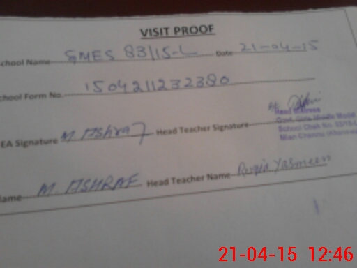 | School Visited by School Health & Nutrition Supervisor (No. of Visits) | Name1: | AAMIR | Name2: | ||