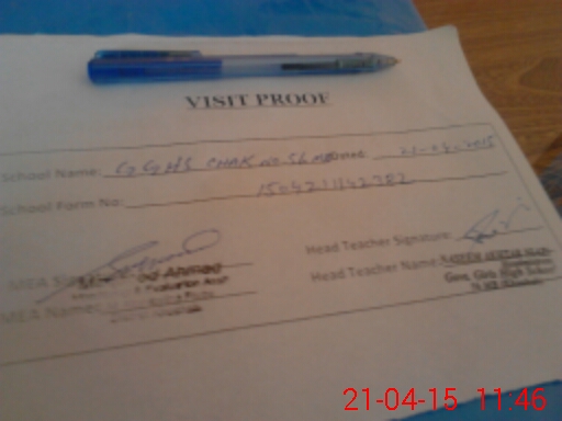 | Attendance Register | Head Teacher | MEA with School | Visit Proof |