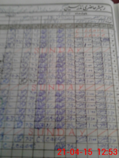 | CNIC | Full Name | Designation | R/C | Absence During Last Calender Month |