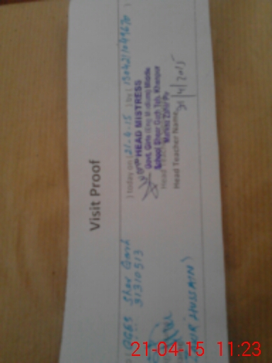 | School Visited by School Health & Nutrition Supervisor (No. of Visits) | 1 | Name1: | Irfan Mahmood | Name2: | Nil |
