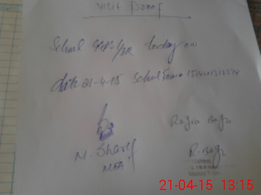 | School Visited by School Health & Nutrition Supervisor (No. of Visits) | 1 | Name1: | Javed Akhtar | Name2: | |