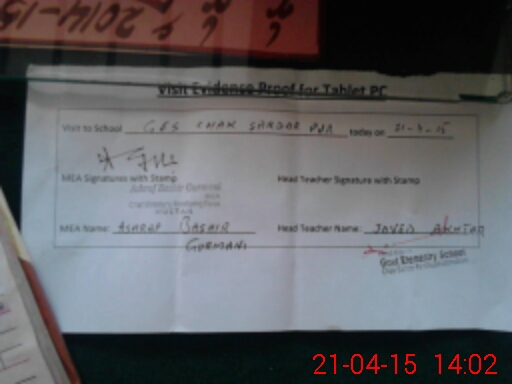 | Attendance Register | Head Teacher | MEA with School | Visit Proof |