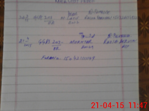 | Monitoring Date: 21-04-2015 | Start Time: 21-04-2015 10:51 AM | End Time: 21-04-2015 11:17 AM | Name of MEA: Mu**** ah**** BN**** 29 | |