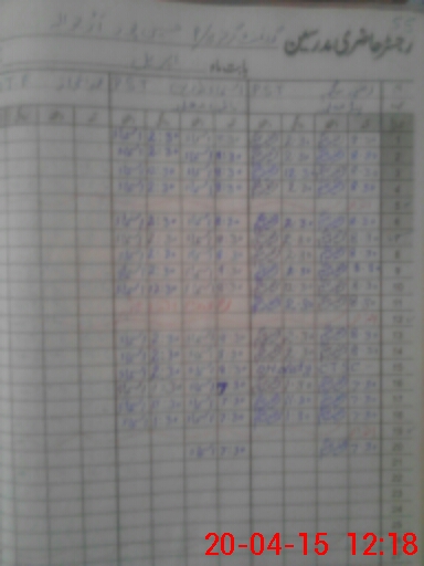 | CNIC | Full Name | Designation | R/C | Absence During Last Calender Month |