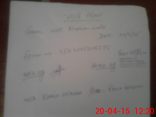 | Attendance Register | Head Teacher | MEA with School | Visit Proof |