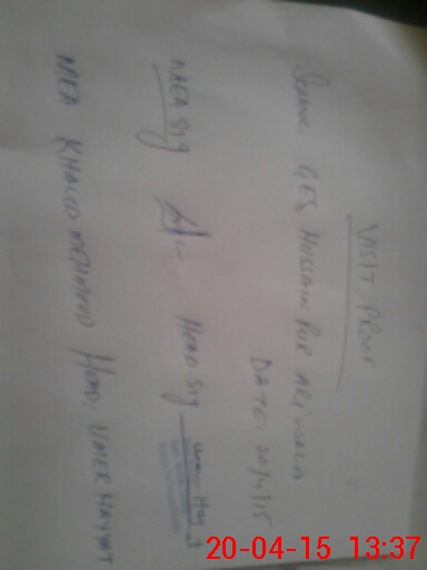 | Monitoring Date: 20-04-2015 | Start Time: 20-04-2015 12:29 PM | End Time: 20-04-2015 01:42 PM | Name of MEA: Kh**** Me**** | |