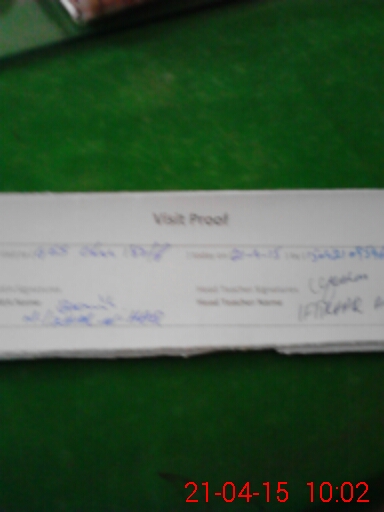 | School Visited by School Health & Nutrition Supervisor (No. of Visits) | 1 | Name1: | UMME KALSOOM | Name2: | |