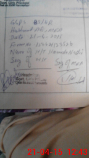 | Name: ZA**** GU**** Designation: (School Headmaster's/Headmistress's) EST G Phone/Cell Number: 03**** |
