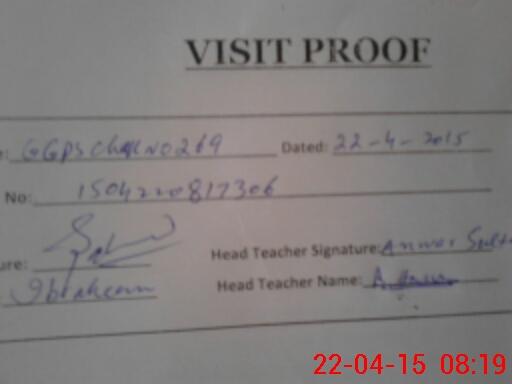 | EMIS Code: 33220940 | Name of School: GMPS CHAK 269/3 JHANDAY WALA (April-2016) | |||