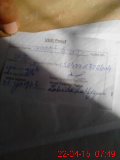 | Attendance Register | Head Teacher | MEA with School | Visit Proof |