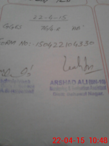 | Name: NU**** SH**** Designation: (School Headmaster's/Headmistress's) SST(art) Phone/Cell Number: 03**** |